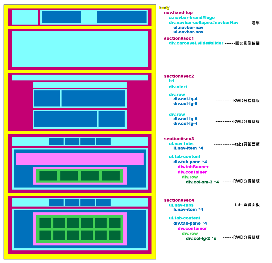 本專案Web的網站規劃組織圖只有一頁"首頁"index.html