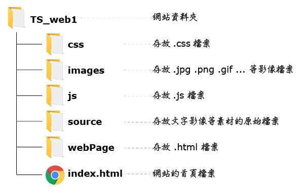 建議:在網站資料夾之下再建立資料夾將檔案分類存放。