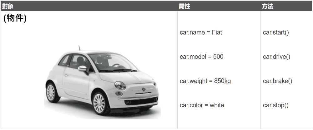 w3school 網站(英文):Objects物件的簡介、 Objects物件的解說與舉例。