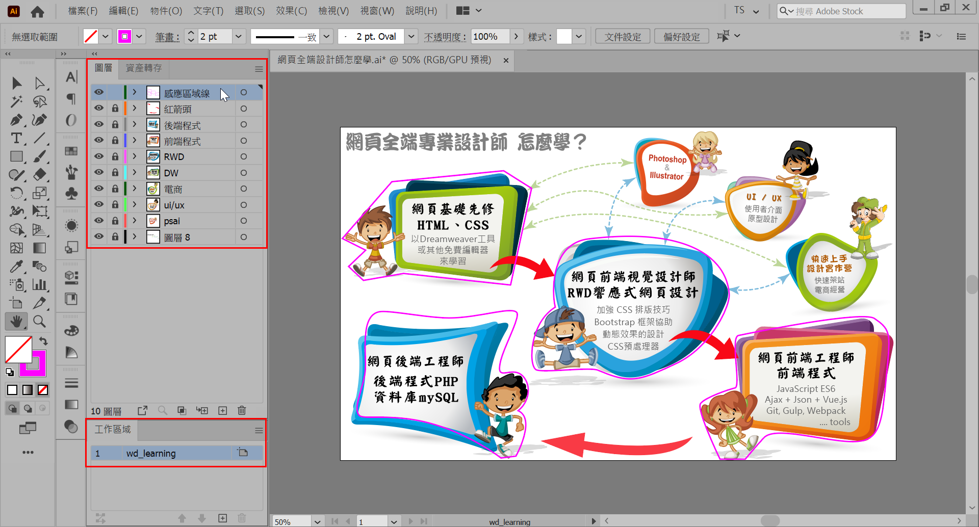 除了直接寫程式的方法之外, 可以運用 Illustrator 繪製向量圖形, 再選擇「檔案 > 轉存為 > SVG」,
