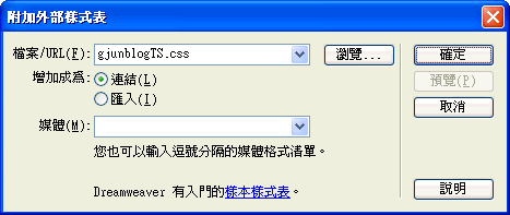 運用CSS樣式面板==>新增CSS規則==>如下圖所示, 將規則定在新增樣式表檔