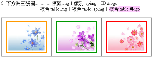 | 8 | ◎ | ◎ | ◎ | ◎ | table #logo (紅色) 但這應該算是人為疏失的結果 應該儘可能避免 同一網頁不應該有二個相同的ID出現 CSS也應該不要同時出現二個以上針對 #logo 的規則設定 |