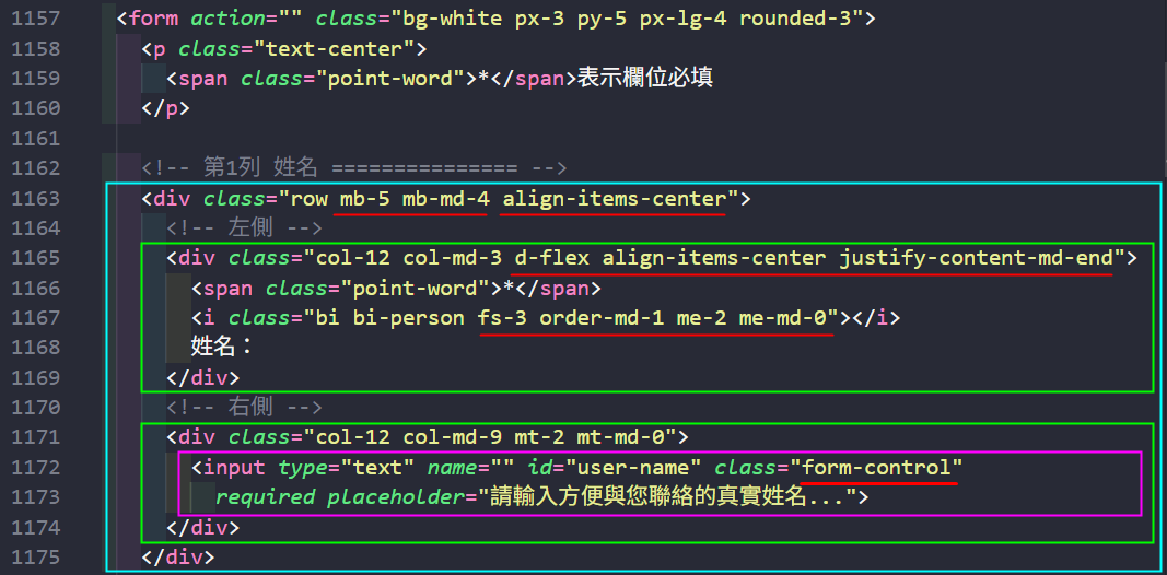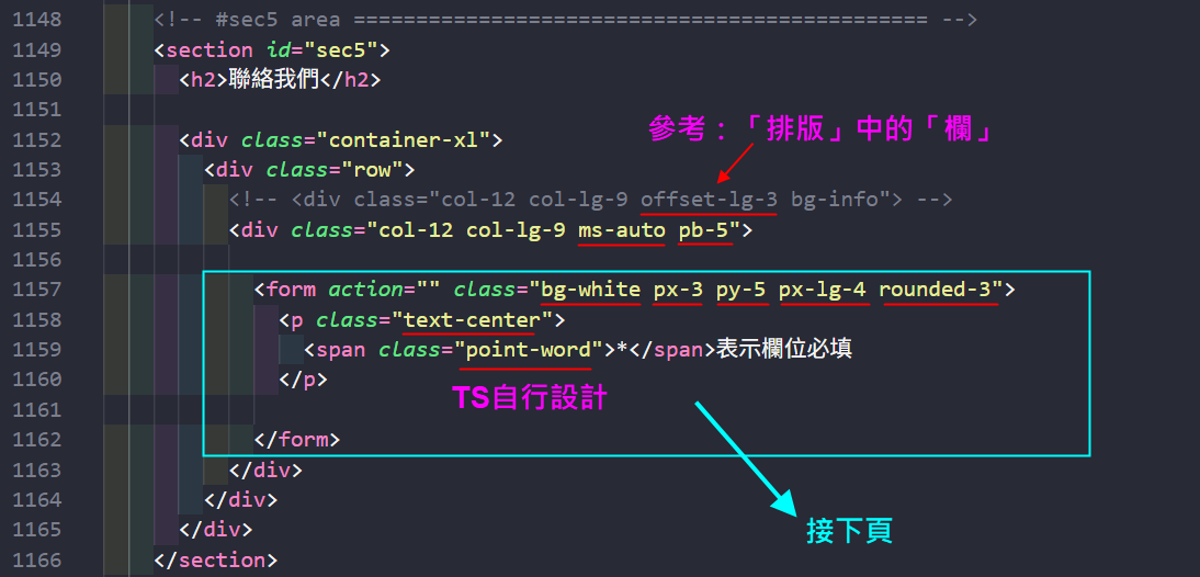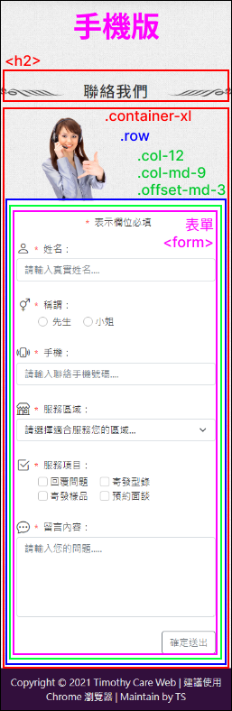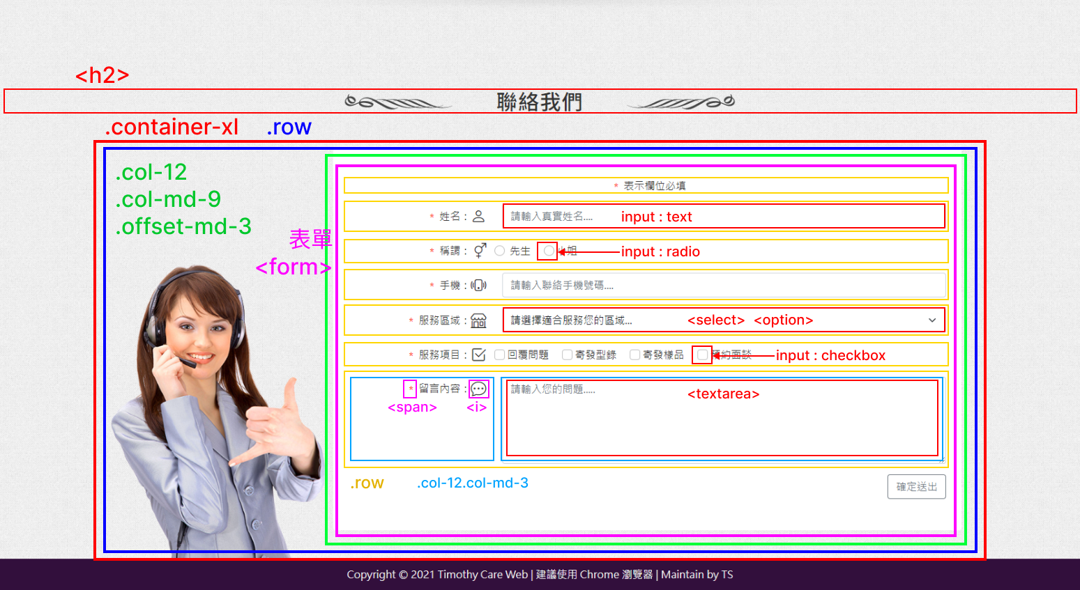 index.html 配合網格系統分配空間+表單各項功能 再 "參考" 以下圖示進行修改設計