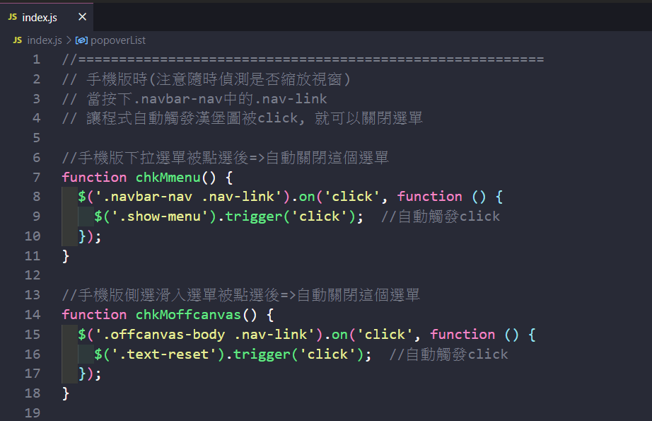 手機版導覽按鈕點選後自動再關閉導覽面板【參考設計】: