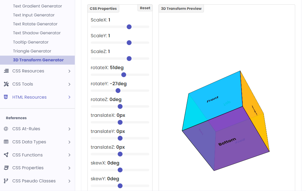 CSS 3D Transform Generator(還有其他 CSS 屬性)