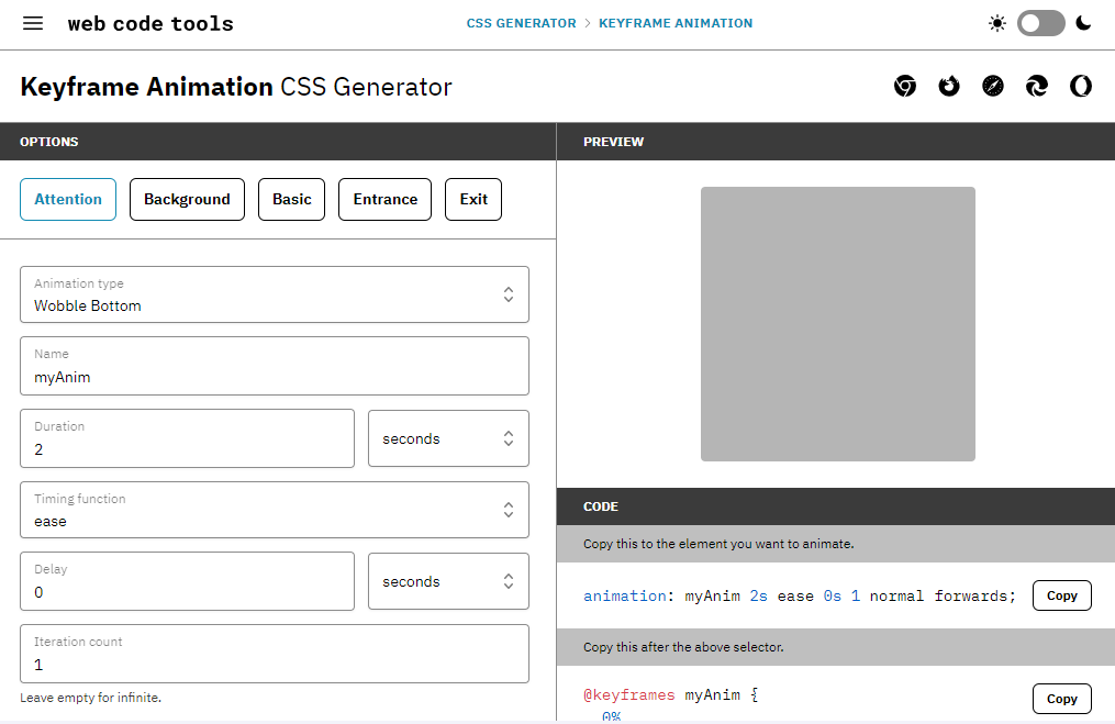 Animation - Web Code Tools (還有其他 CSS 屬性)