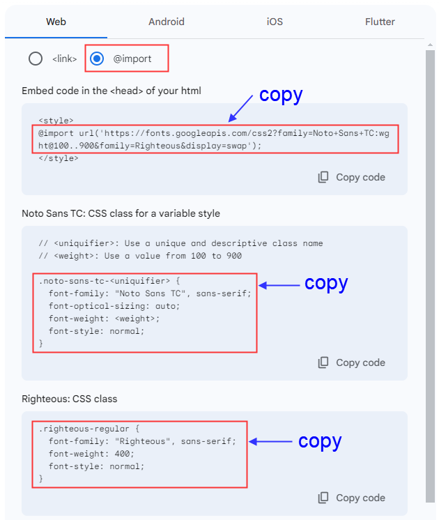 準備 google web font