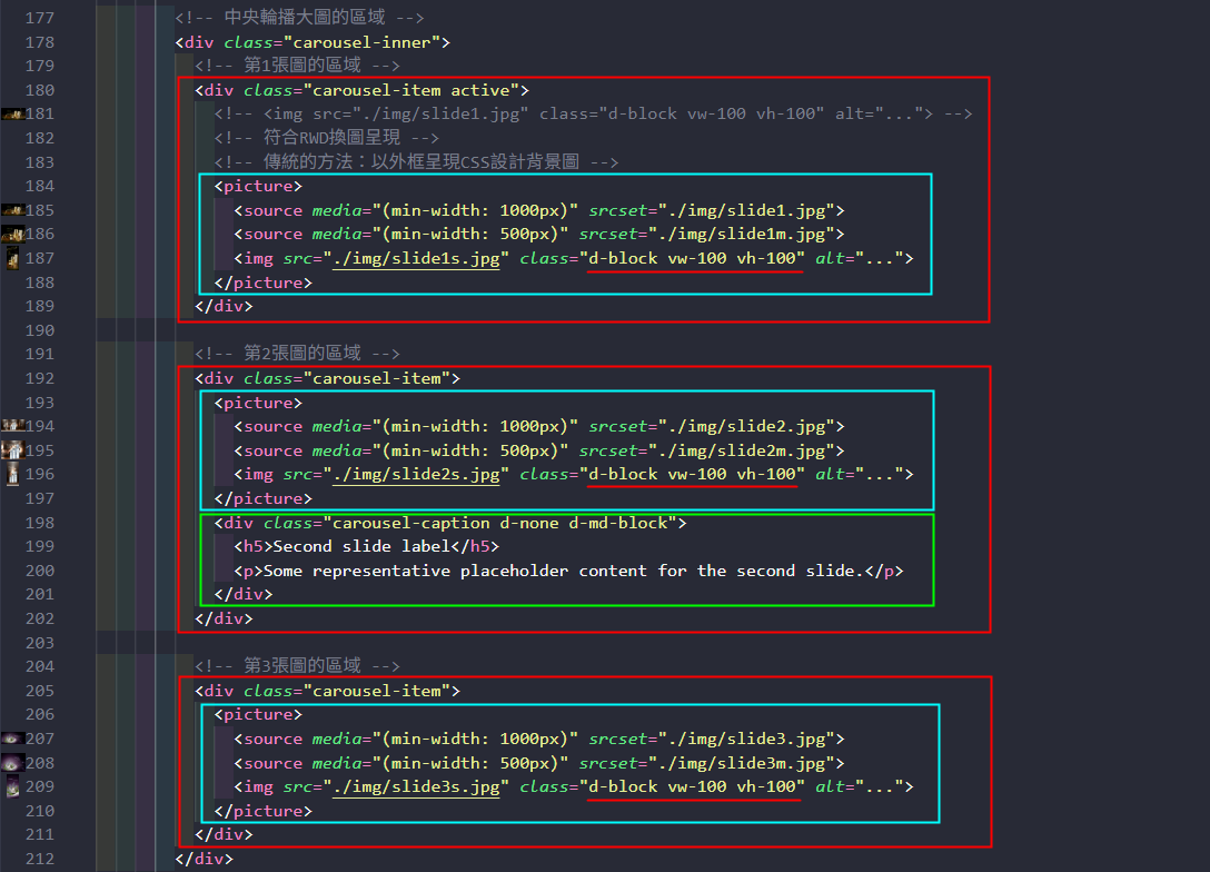 資料參考:輪播設計 (Carousel) Bootstrap說明網站(中) 、 w3schools(英) 、 RUNOOB(中)
