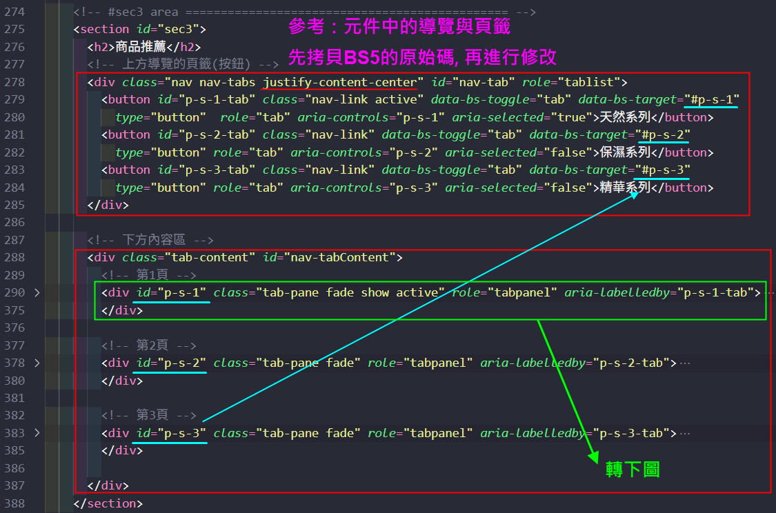 index.html 配合頁籤功能 再 "參考" 以下圖示進行修改設計