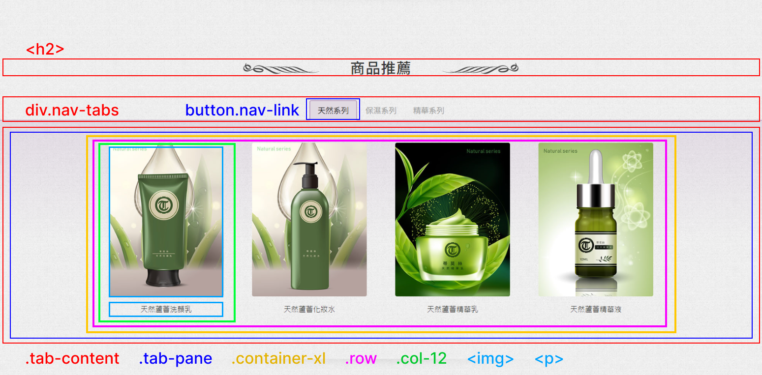 index.html 配合頁籤功能 再 "參考" 以下圖示進行修改設計