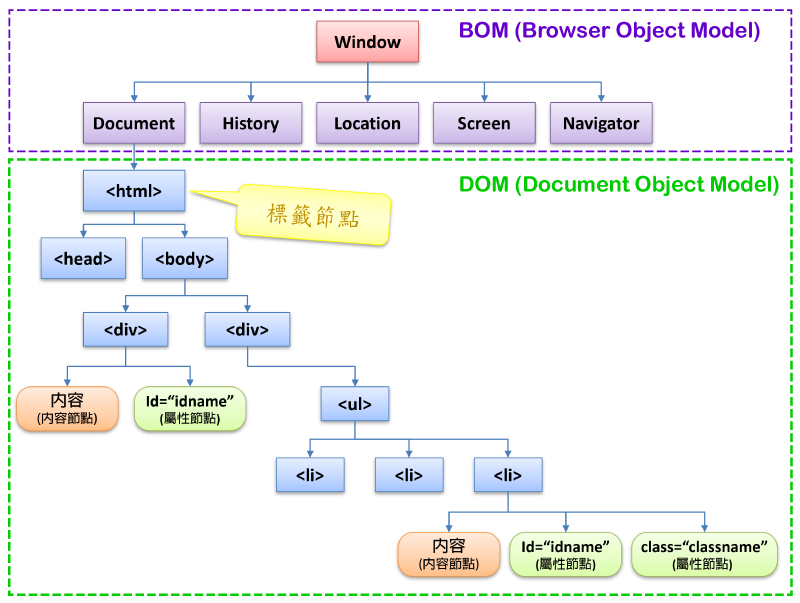 在HTML DOM (Document Object Model,文件檔案對象物件模型), 一切都是一個節點: