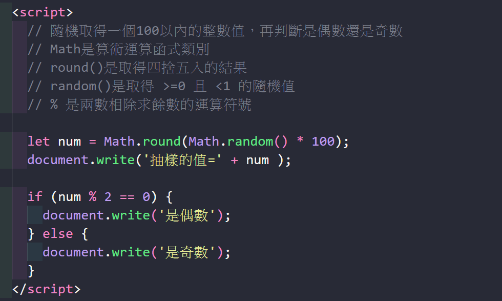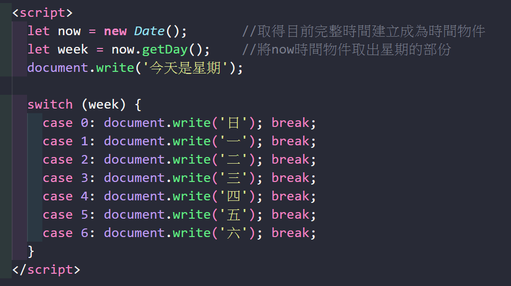 JavaScrip的程式碼必須被包在<script>及</script>標籤之間。