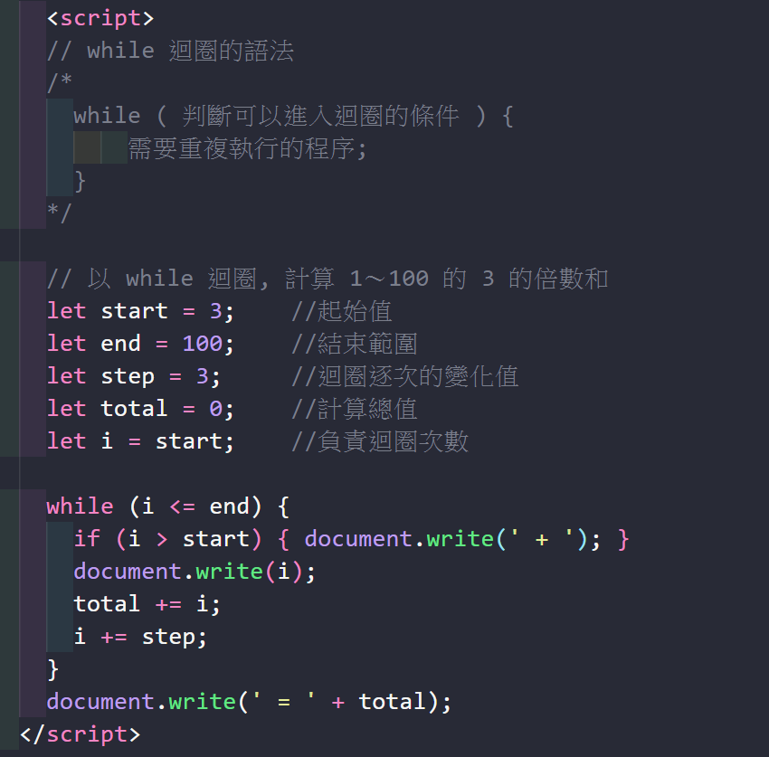 先判斷條件, 如果條件不成立, { } 內的工作可能一次也沒執行。
