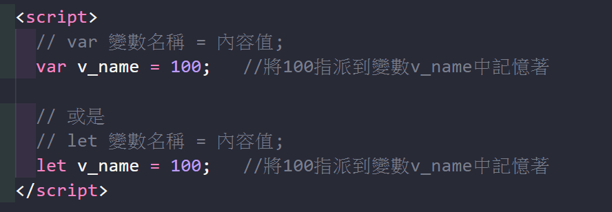 | 2、使用 var | 傳統方式, 較不嚴謹, 可重複定義, 後定義的覆蓋先定義的 |