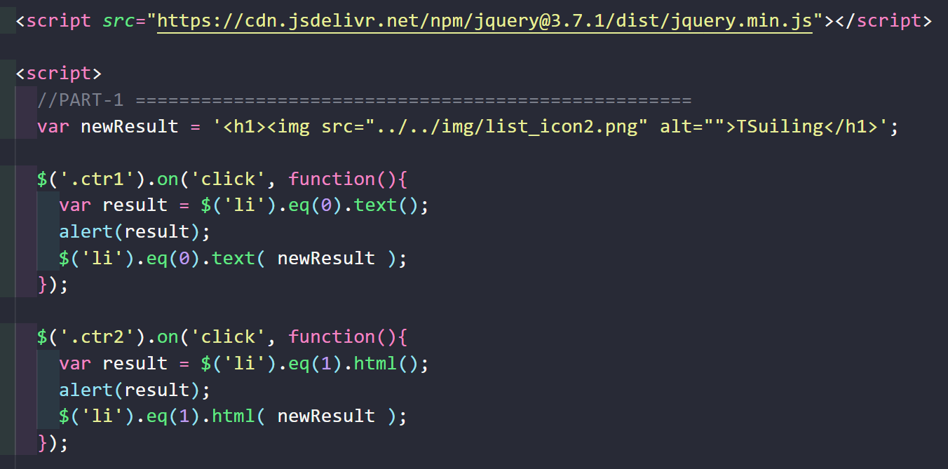 <button class="ctr2">2. 以 html 方法取得 list2 原有內容,再寫入"<h1>TSuiling</h1>"</button>