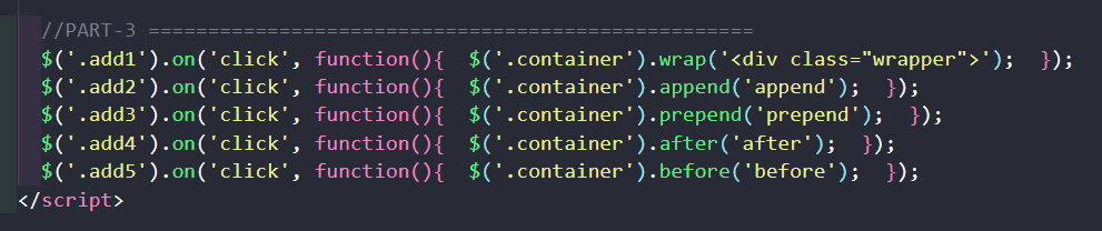 | wrap ( content ) | 在指定的物件外圍新增加上 content 參數的內容 [參考英文版] [參考簡中版] [參考JQ官網版] |