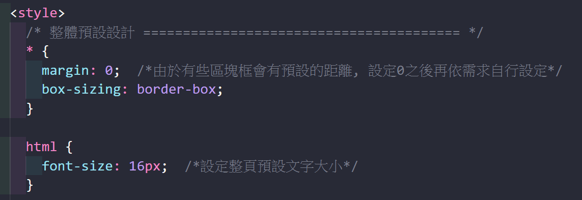 設計 CSS 樣式 (以下的CSS設定皆撰寫在 <style> ...... </style> 之中