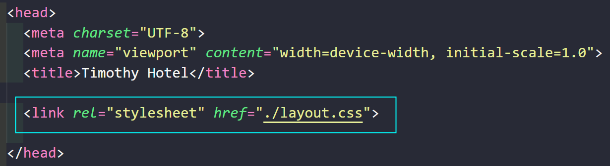 在「index.html」檔案中 </head> 的前面加上如下圖的連結: