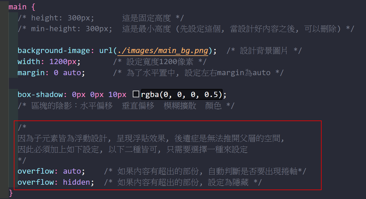 有關 overflow,可以參考:RWD講義__1-5,點選【overflow 的探討】
