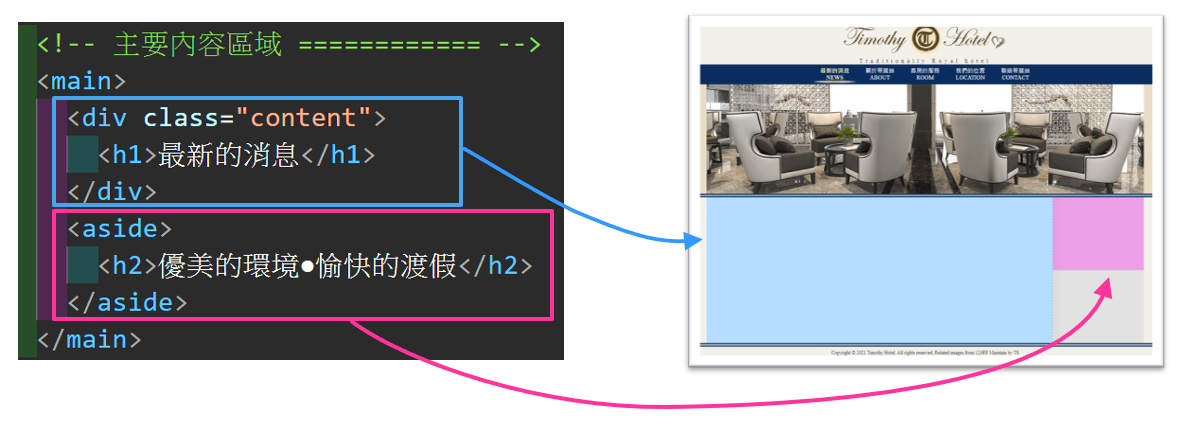 設計 <main> 部份,並且解決浮動式排版的後遺症