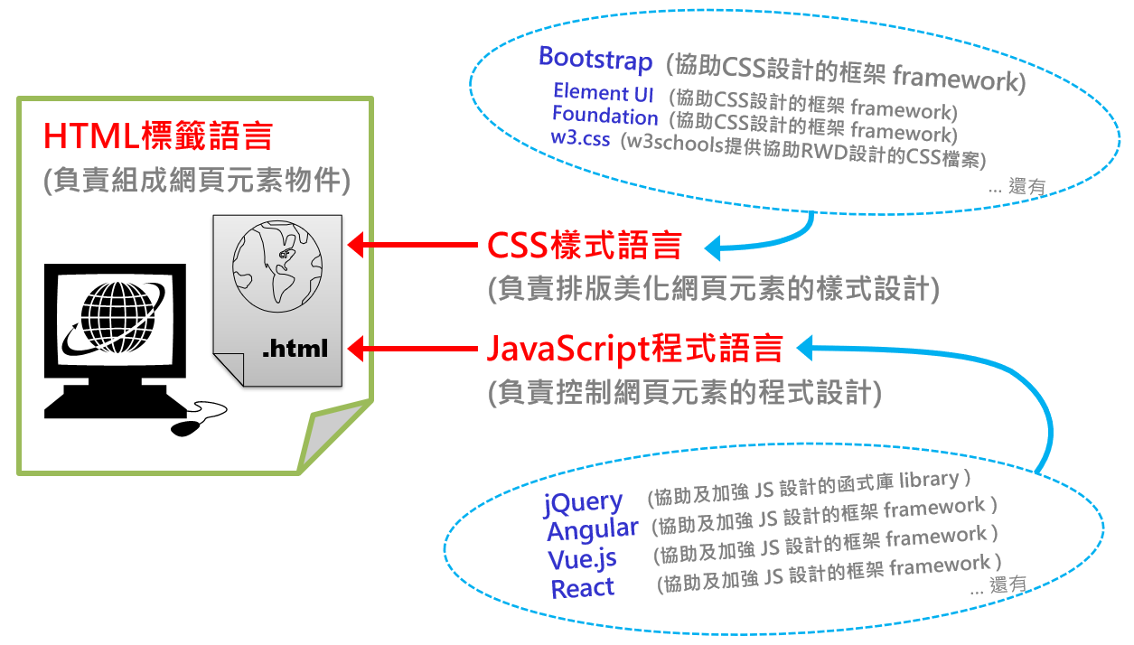| Java Web | 可開發控制的領域很廣,要學的領域也很廣,網頁開發使用的較少 | Spring、Struts、Hibernate... | MOMO購物網... |