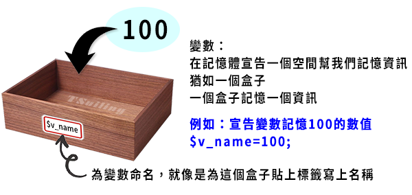 PHP程式中的變數不需事先宣告, 直接命名使用。