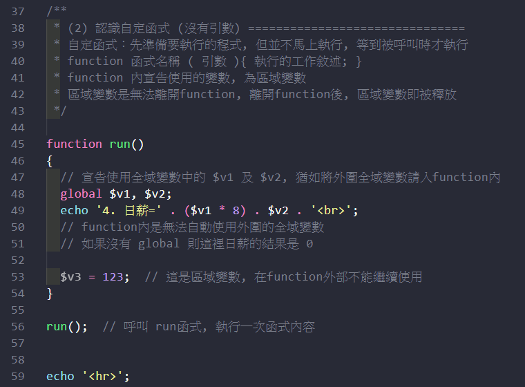 function(...){...} 自定函式 的學習 & 全域變數vs區域變數
