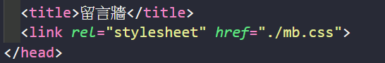 在 mb_index.html 檔案中連結到 CSS 檔案