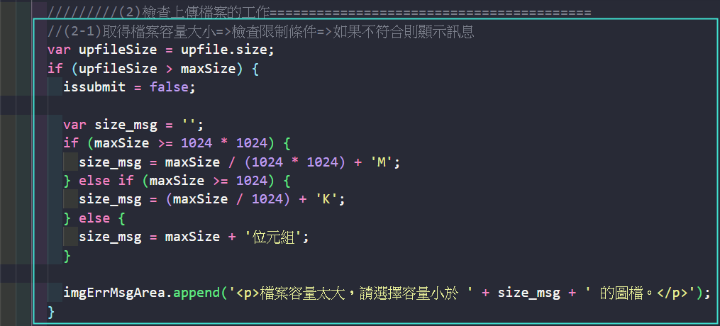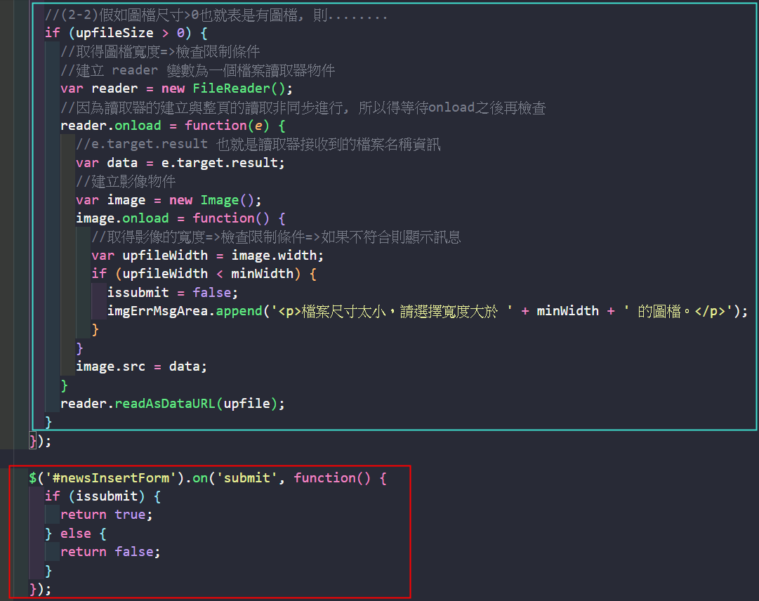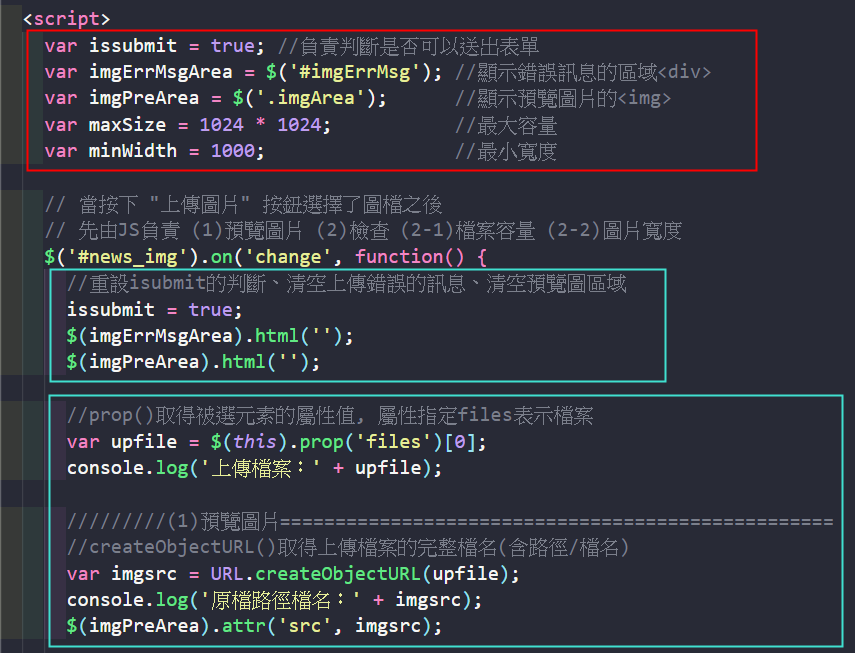 上傳圖片檢查的 JS 與前面 upload test 相同,可以拷貝過來,