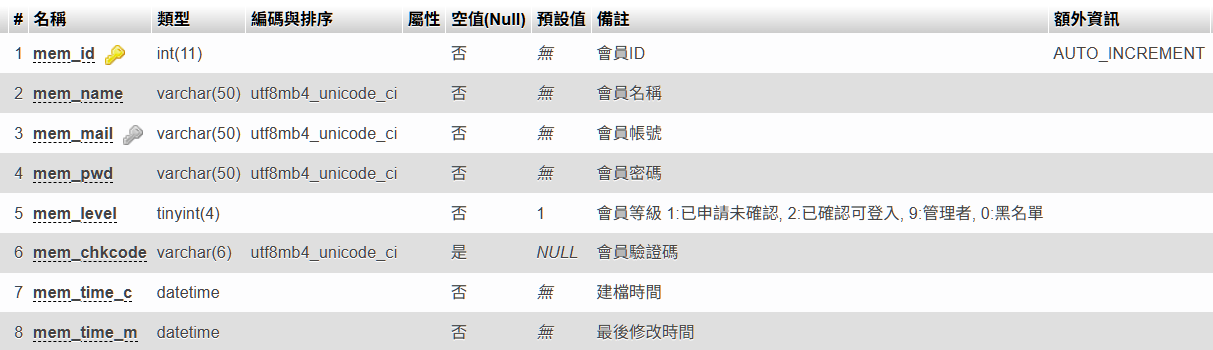 會員資料表