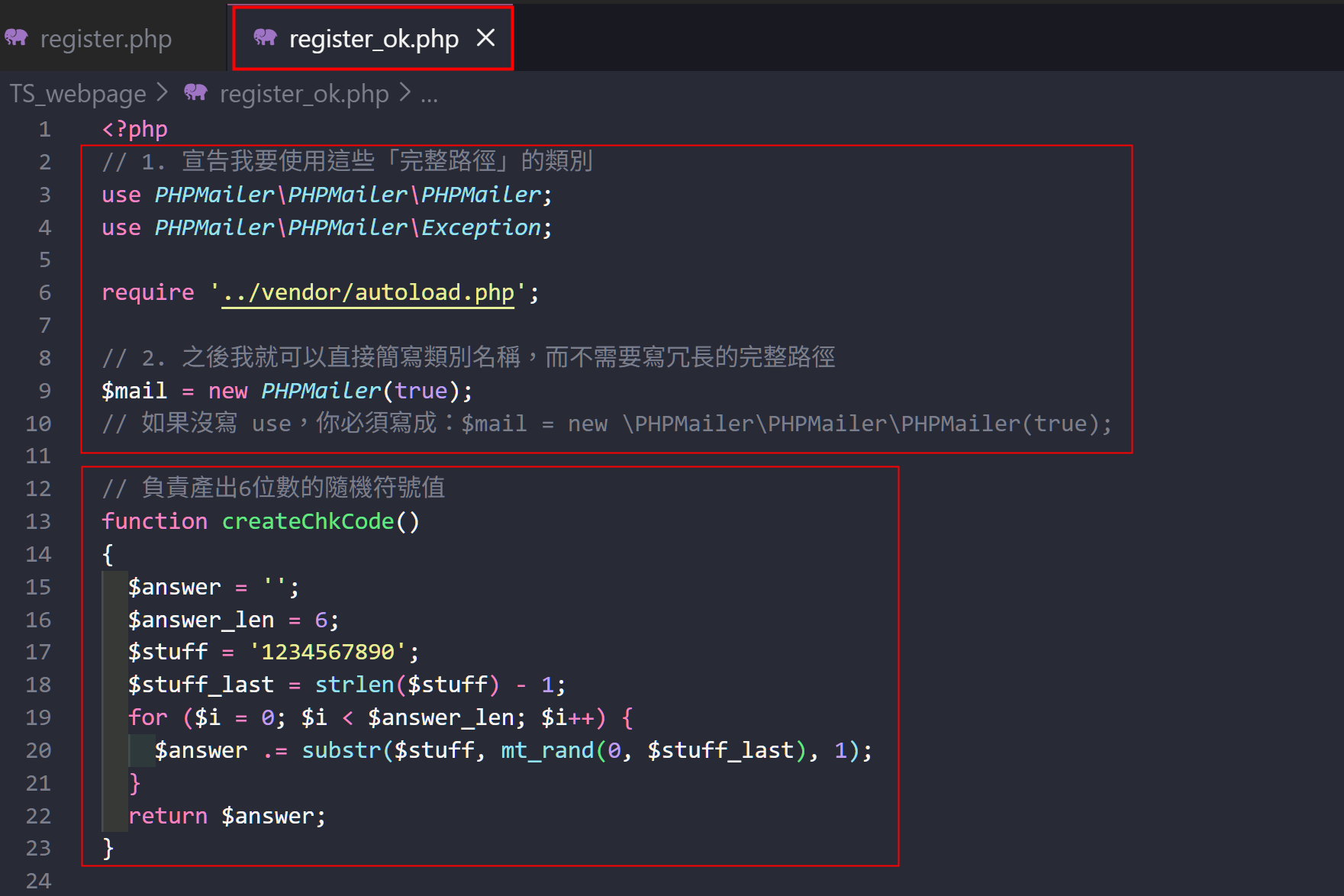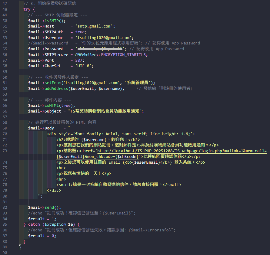 3. 在檔案中使用 PHPMailer