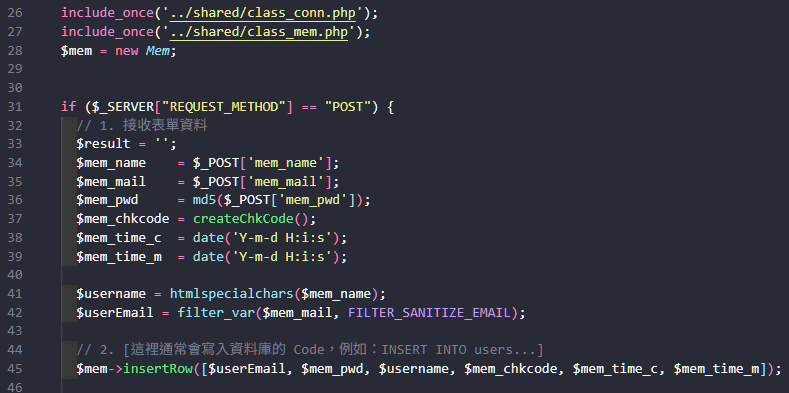 (2) 調整 class_mem.php
