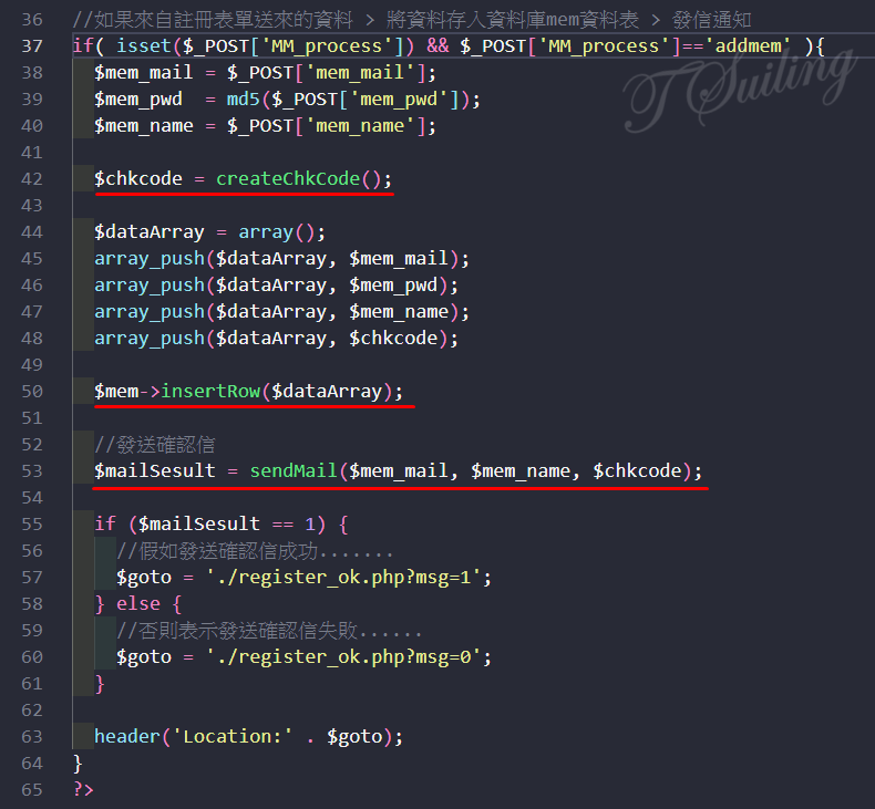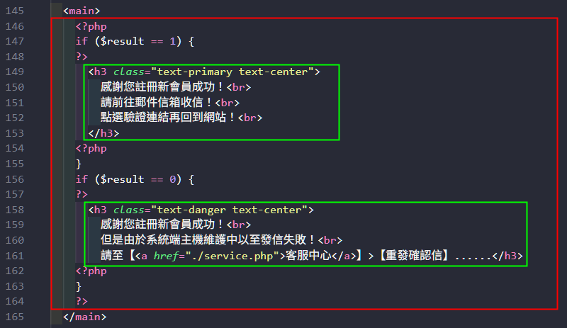 在 login.php 檔案中,設計由 mail 確認回來處理的工作