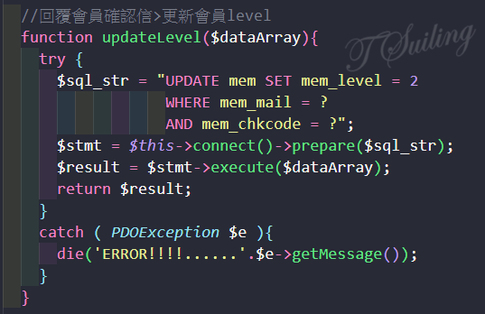 (3) 當收到確認信並點選連結回網站後, 在 login.php 進行會員身份等級的改變