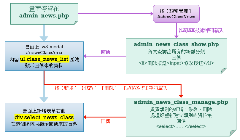 通常分類項目會獨立頁面處理新增、修改、刪除的工作,