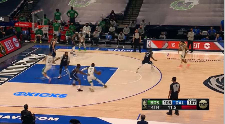 關鍵時刻Luka Doncic挺身接管比賽,最後15秒砍進三分彈要回領先,Brown也不甘示弱切入得手扳平比數,Doncic接著又命中高難度後撤步三分準絕殺,只剩0.1秒的塞爾提克回天乏術,獨行俠就靠著這記絕殺帶走勝利。